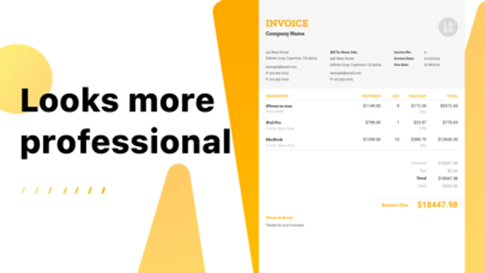 Create an invoice and estimate with a professional template and customize it with your logo.