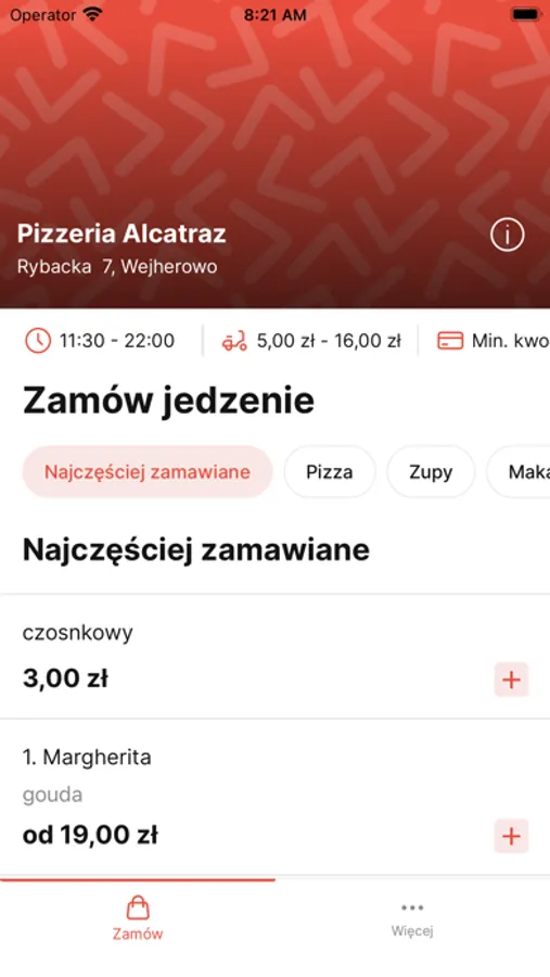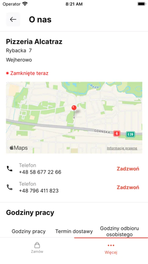 Oprócz zamawiania online aplikacja pozwala sprawdzić: