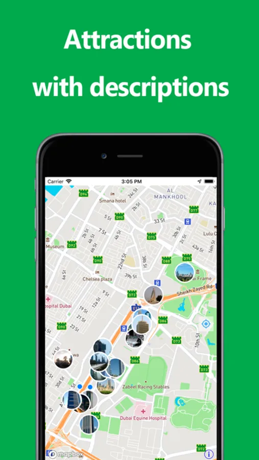 Turn on tourist mode to see the nearest attraction with a photo and description.