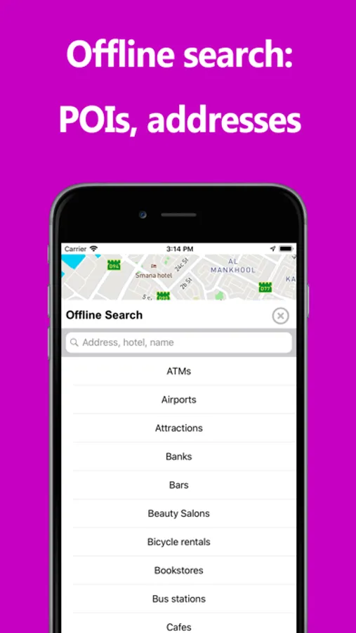 Look for addresses or interesting places (attractions, restaurants, ATMs ...)