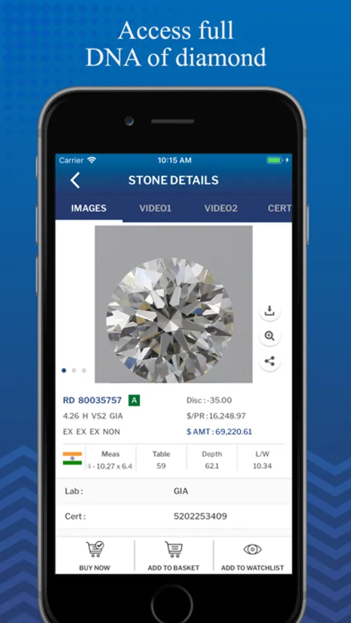 •View diamond certificate and images