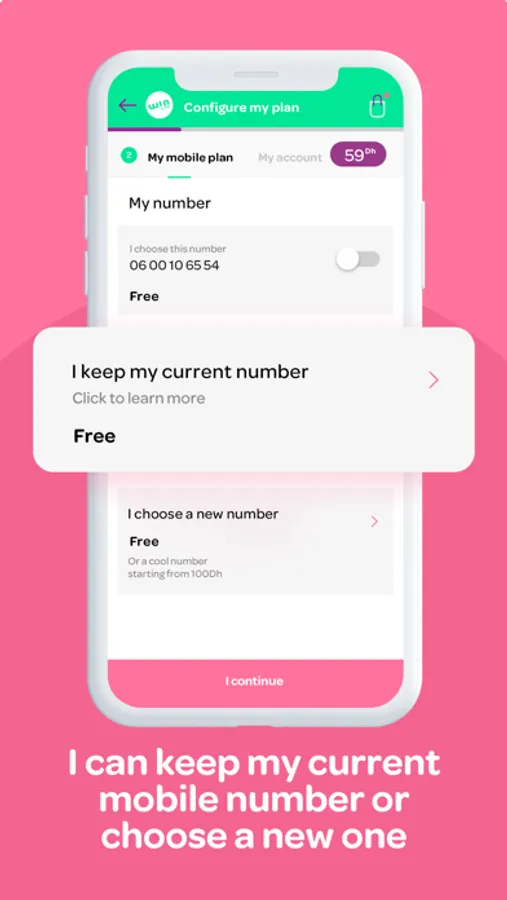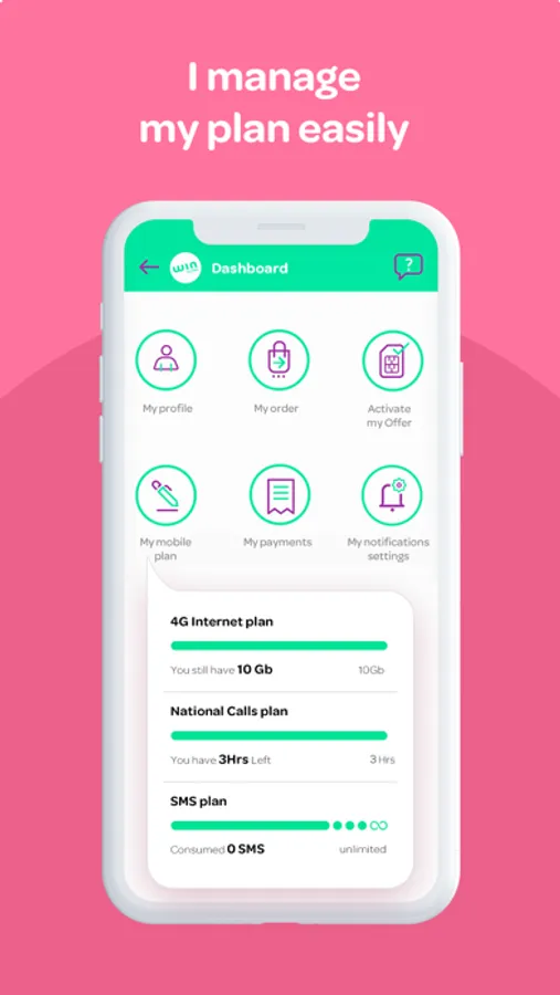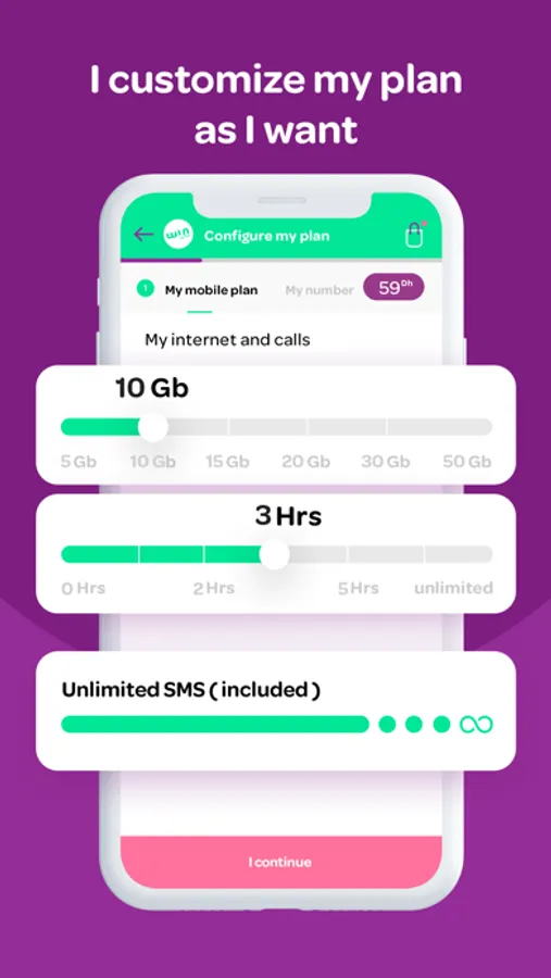 You customize your mobile plan by choosing the volume of internet and calls you want. You can stop & resume and modify your win plan whenever you want!