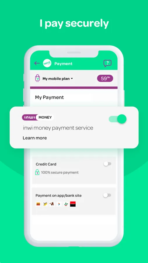o You pay your mobile plan and buy your passes with your bank card, on your bank's website or mobile app or using inwi money, inwi's electronic wallet