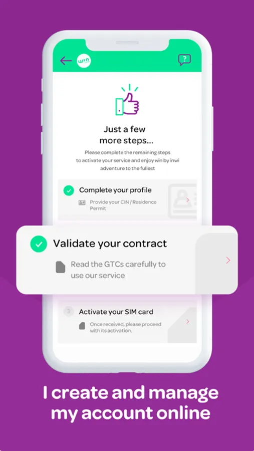 With win, everything is done online on the win.ma website or the win by inwi mobile application (subscription, payment, modification, management of your 100% online plan)