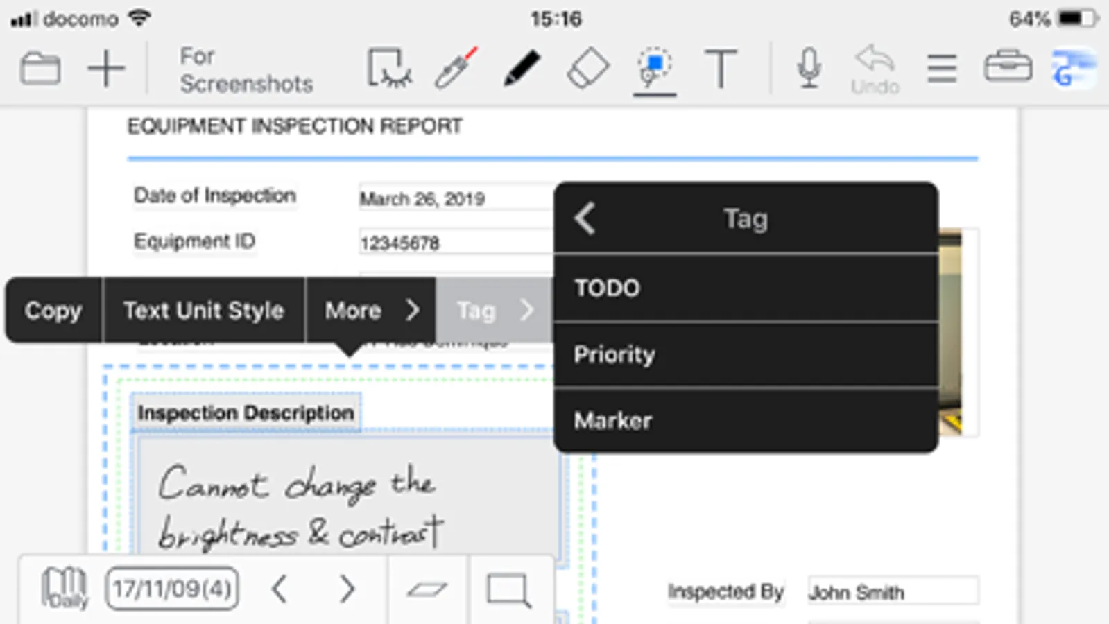 GEMBA Note is a state-of-the-art app that can digitize the paper forms and workbooks used for services and industries involving field based activities. The app makes it possible to record information, create flexible to-do lists and to prioritize items and inspection results. Users can transform their notes into sophisticated organization plans, assessment reports, and action lists. The app combines the flexibility of a pen and paper with digital media, capturing directly from your tablet. Audio recording features enable users to capture an accurate record of conversations, environmental sounds, or just spoken notes.