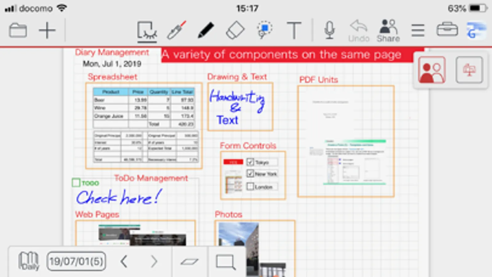 • Convert to a Share Note to allow multiple users to visually interact with the documents and add text, handwriting, photos, new pages, graphics, spreadsheets, and any other content types