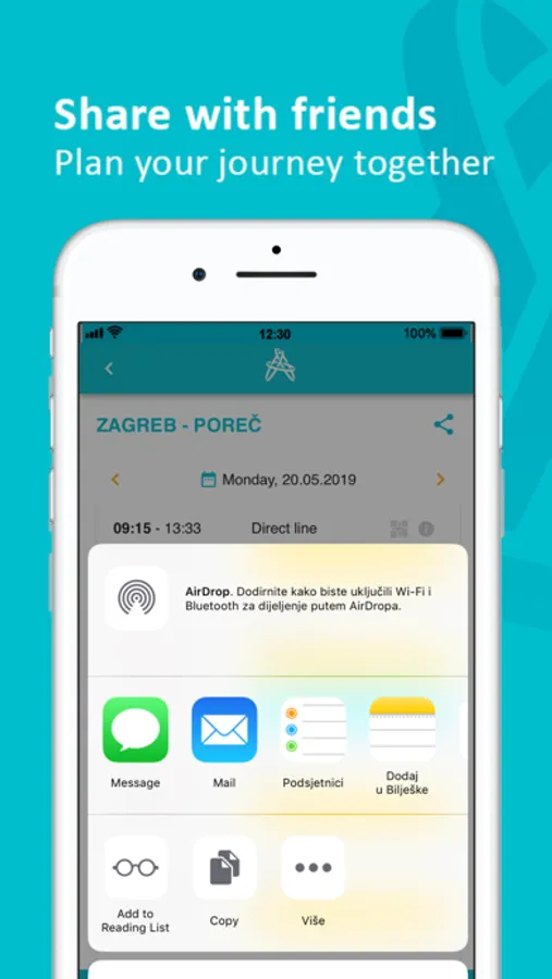 SHARE WITH FRIENDS – share your route timetable and prices with family and friends via Facebook Messenger, WhatsApp, Viber, Twitter, SMS or e-mail message