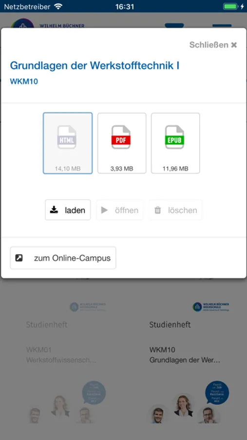• „Offline Lernen“ durch die Downloadmöglichkeit von Studienheften in den Formaten PDF, EPUB und HTML