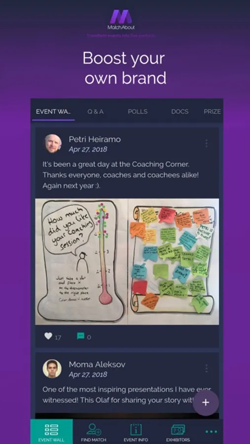 Never-ending story, because once you’ve joined the app, you will be able to collect contacts, materials and any other kind of valuables from event to event. Also to keep all of them safe at one single place. Whether you prefer to be in focus of event or you just prefer to be on track, this is the right place for you. Because we are always on the source of happening and our mission is to transform events into real life opportunities!