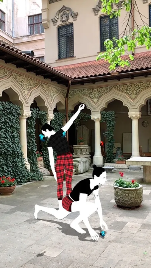 The user moves in the choreographic sequences in relation to architectural, historical and landscaping signs.