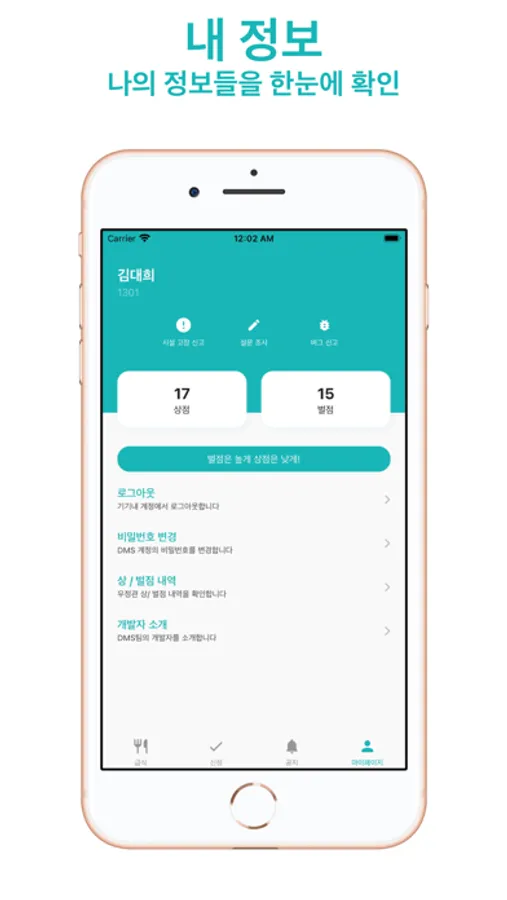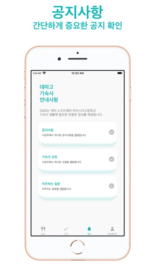 대덕소프트웨어마이스터고등학교 기숙사 지원 시스템(DMS) 입니다