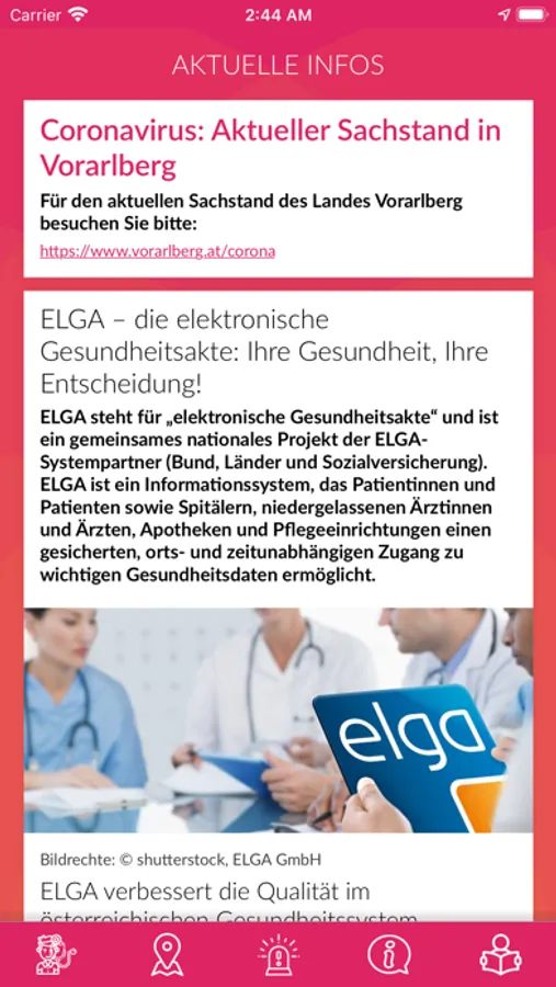 Über die Xsund-App erhalten Sie Informationen zu den Vorarlberger Gesundheitsdiensteanbietern in Ihrer Nähe sowie zu Notrufnummern und Helplines. Ebenfalls finden Sie in der Xsund-App aktuelle Gesundheitsinformationen für das Land Vorarlberg als auch Gesundheitsanleitungen für den Notfall und Ihren Alltag.