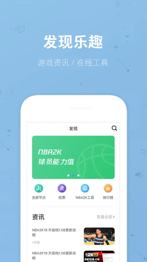- 游戏资讯,游戏工具,用户排行榜,投票,NBA2K小工具(查询球员/球队文件ID及相关信息)。