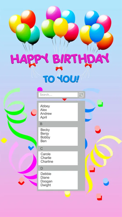 Our Happy Birthday to You app contains over 1600 names personalised in the classic 'Happy Birthday to You' song.