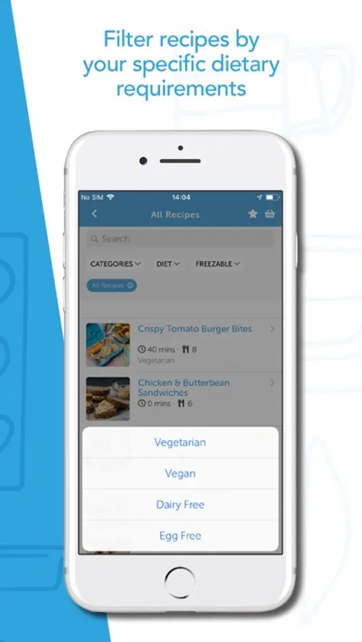 * Filter recipes by your specific dietary requirements (vegetarian, vegan, dairy free and egg free)