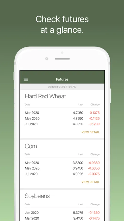Futures: See Grains, Feed, Livestock, and Ethanol futures listed in order of your preference