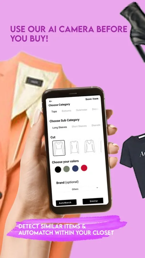 Take minus28 Shopping with you and your AI powered camera will detect the cuts of clothes, the colors and will Auto-match it with items in your closet!