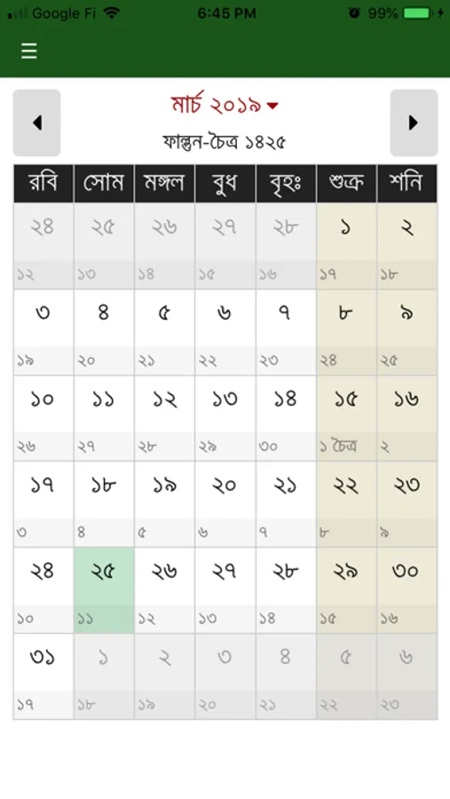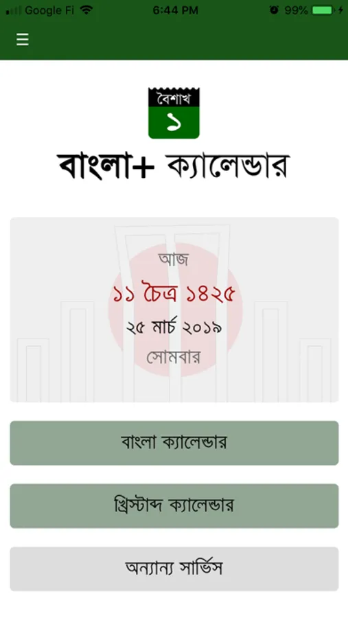 Bangla+ (Bangla Plus) Calendar presents you the Bengali calendar officially used in Bangladesh. It covers dates from year 1990 AD (1396 BD) to 10 years in the future. View any Bengali or Gregorian month with Bangla dates in this app. It also includes Hijri calendar in Bangla language.