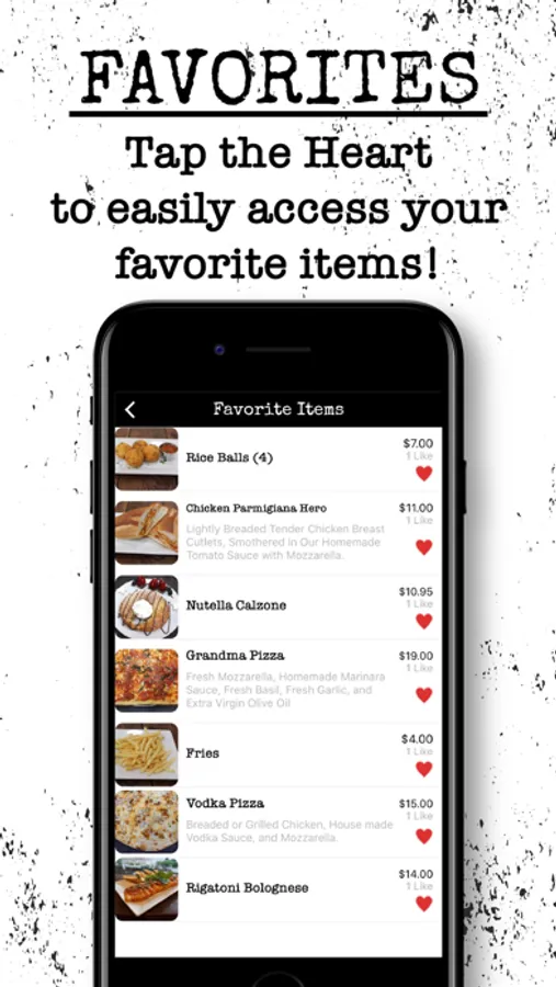 Favorite Menu Items - Tap the Heart next to your favorite Lupo menu items and they will be added to your home screen for easy access and quick adding to cart!