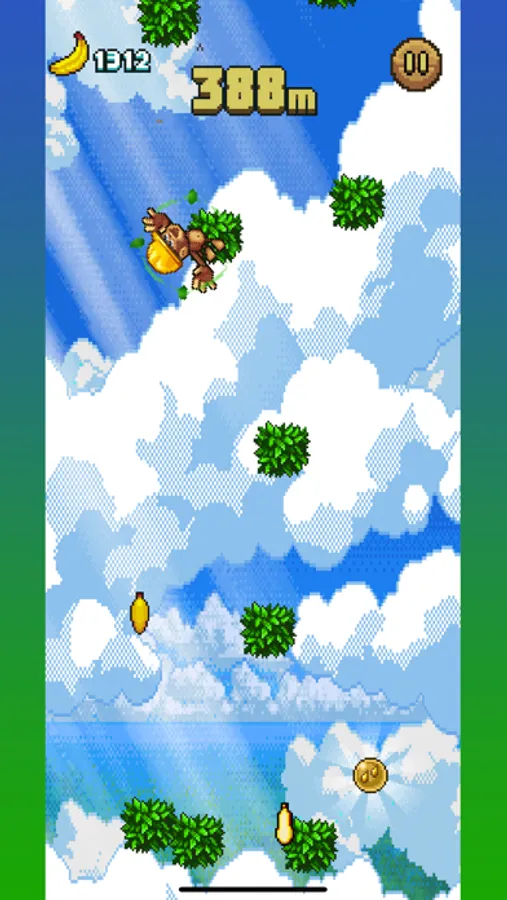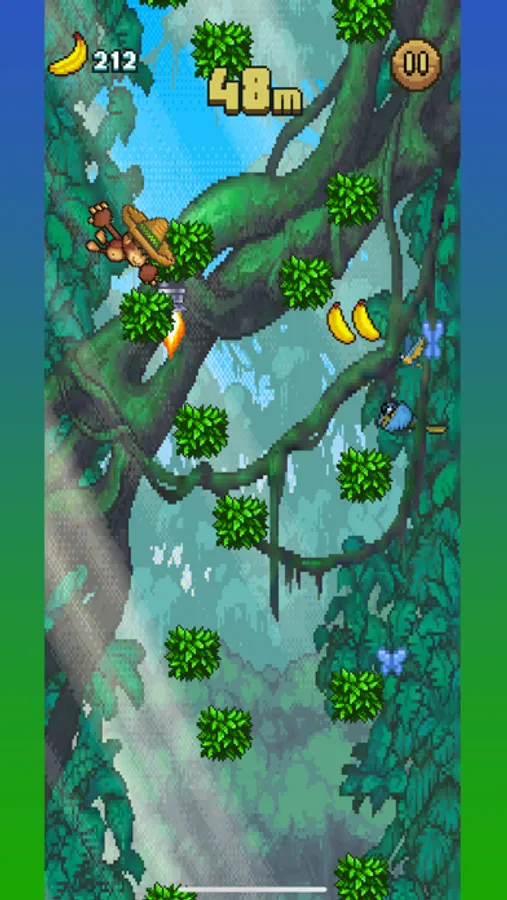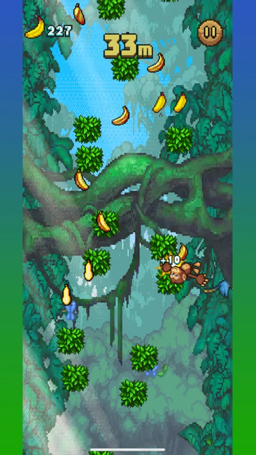 No cage can hold this free swingin’ monkey. In a race to prove who’s king of the jungle, this little monkey plans to go up, up and all the way up! Swing from bush to bush and quickly climb up as high as you can. Skillfully use boosts to power up your climbing strategy. Collect bananas and use them to acquire boosts and cool costumes to show off your unique and flashy outer monkey style! Swing past your Game Center friends leaving their best climbs in the dust. We hope to see you at the top!