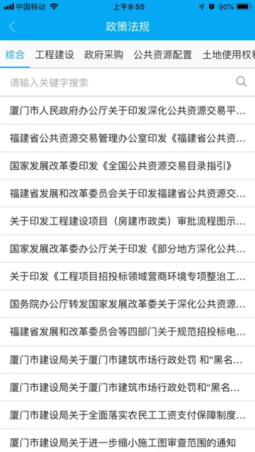 三、厦门公共资源交易办事指南、法律法规文件查看功能。