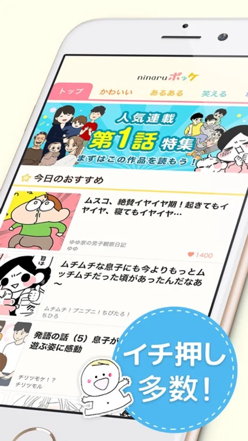 ninaruポッケは、現役ママの作者さんたちの日々の「リアル育児」を赤裸々にコミックエッセイにして、笑いあり、ほっこりあり、涙あり、発見ありと育児経験している人に共感できる場面がたくさんあります。