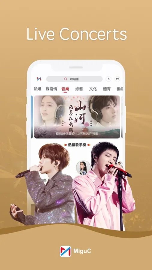 ·Enjoy exclusive live concerts of popular and trending artists from Migu Music!