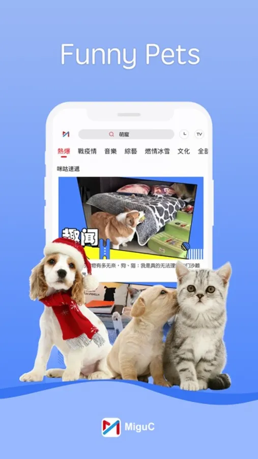 ·Follow our homemade variety shows, like series of fitness reality show and Migu Entertainment News!