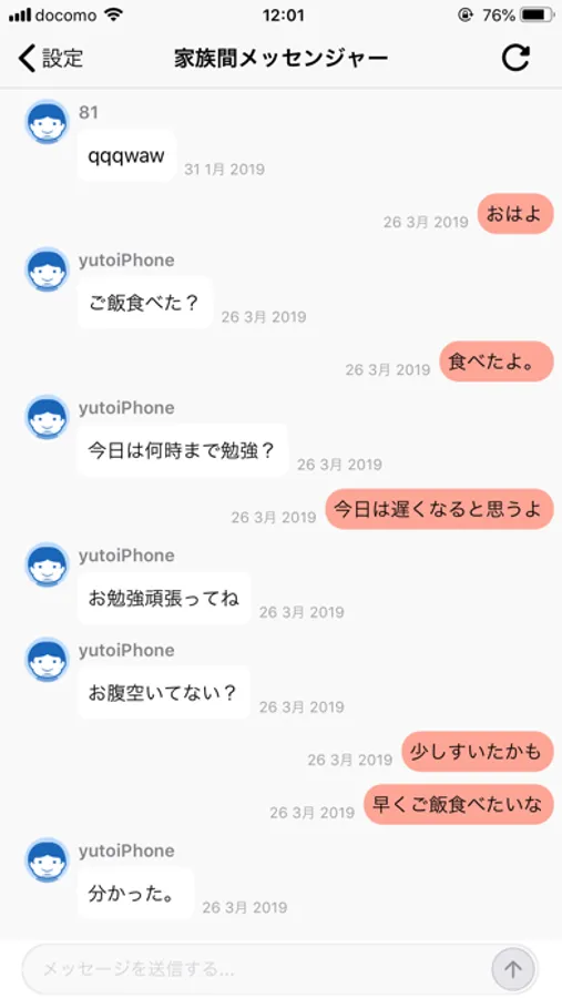 ・メッセンジャー: 親子間のメッセンジャーをご利用いただくことができます。