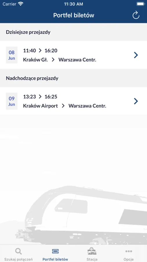- Bilet w formie elektronicznej do wyświetlenia podczas kontroli w pociągu