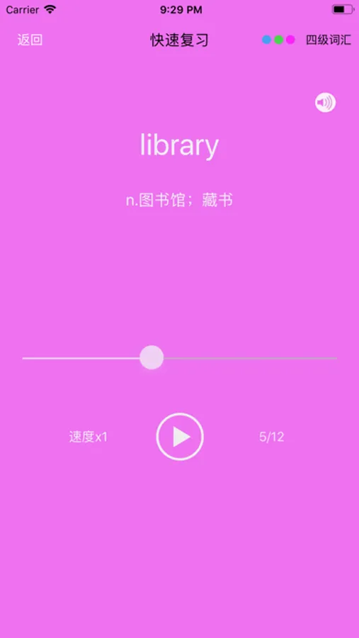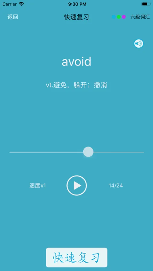 独有的复习模式,能够在短时间内浏览大量已学过的单词,简洁、高效。