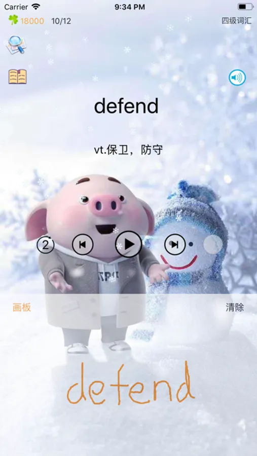 天天背单词使用了Iphone手机内置英汉词典,点击左上方课本按钮,则打开当前单词的词典。需在手机设置>通用>词典中勾选“简体中文-英文”牛津词典,最好取消选择其它词典,以达到最好的体验效果。