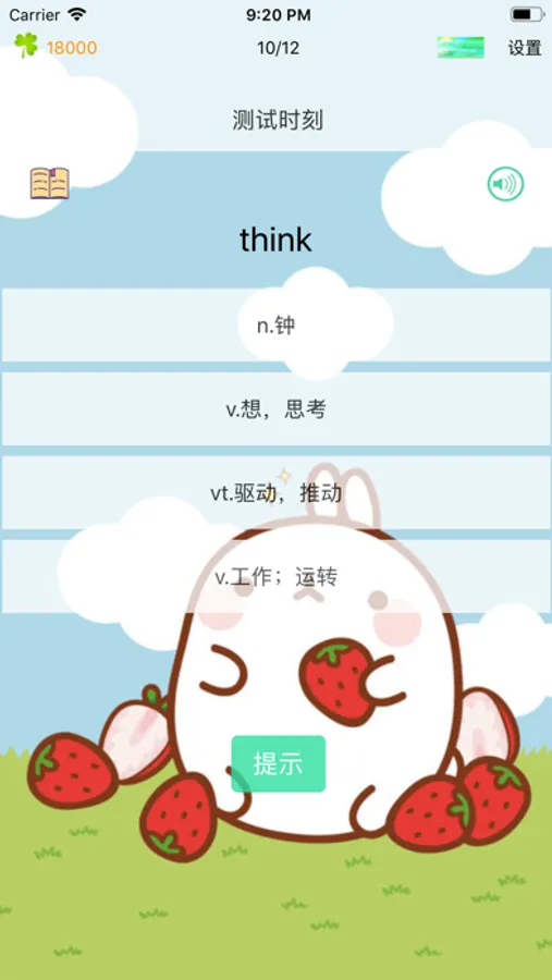 测试阶段,答对的越多,获得的三叶草越多,三叶草可以在商店中购买新的皮肤(背景)。