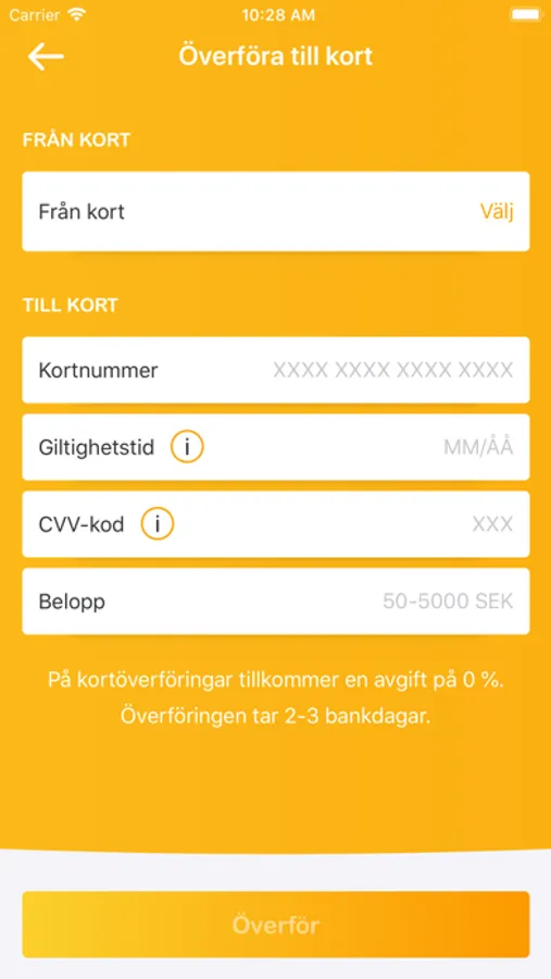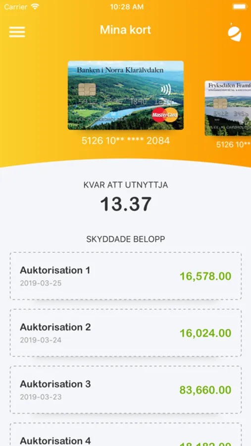 Med Sparbankernas kort app får du en lättillgänglig och snabb översyn på ditt eller dina kort. På ett smidigt sätt ser du ditt saldo och dina senaste köp, överför pengar mellan kort, stänger av kortet för Internet eller utlandsköp och mycket mer.