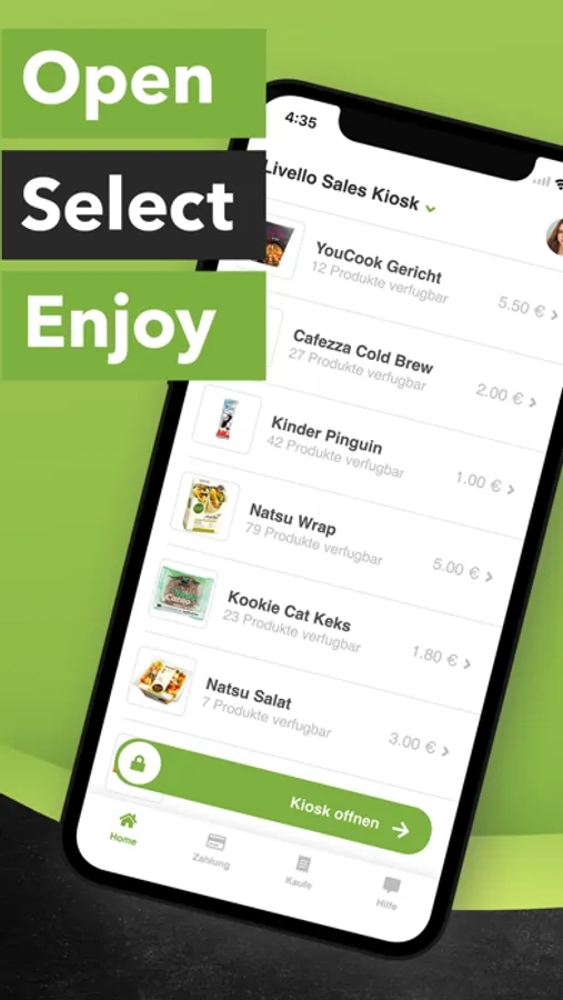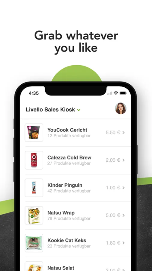 The Livello app shows you at any time of the day what delicious and balanced food is waiting for you in your smart kiosk.