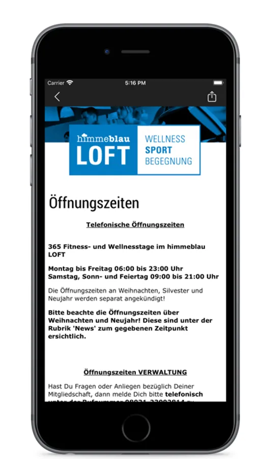 Mit der himmeblau App hast Du Dein himmeblau LOFT immer in der Hosentasche. Informationen, wie z.B. das aktuelle Kursprogramm, die nächsten Events, Studiofotos und Angebote sind immer dabei und Du erhältst alle News per Push Nachricht.