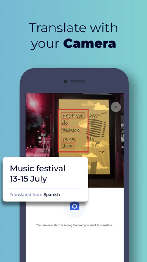 Go Translate has a fantastic eye for reading text! Simply point your camera to whatever text you want Go Translate to read and translate. Easily translate signs, menus and more when you're traveling.