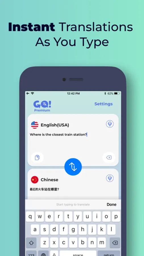 Go Translate is a huge time saver! It is an extremely fast translator with its instant translation technology. You will start seeing your translations on the screen immediately as you type.