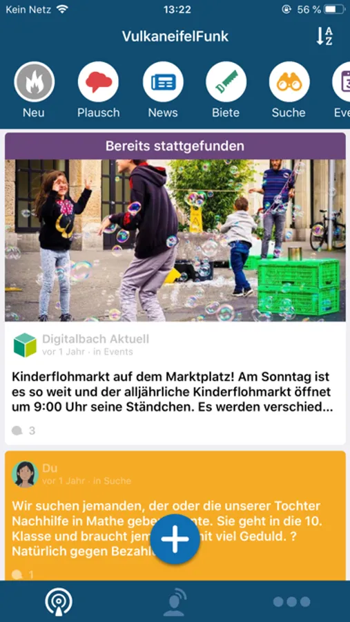 VulkaneifelFunk ist die Kommunikationszentrale für die Vulkaneifel! Mit der Vulkaneifel-App können Bürger*innen ihre Hilfe anbieten, Gesuche einstellen oder einfach zwanglos miteinander plauschen.