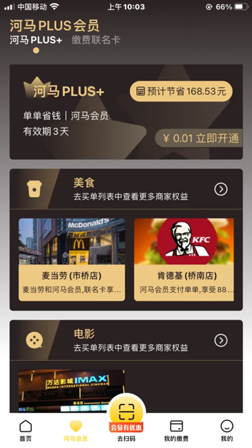 河马会员应用服务于本地生活,为消费者提供线下商家,包括不局限于美食、酒店、娱乐、超市、运动休闲、宠物等全面生活服务平台,让消费者享受更加优惠的消费体验