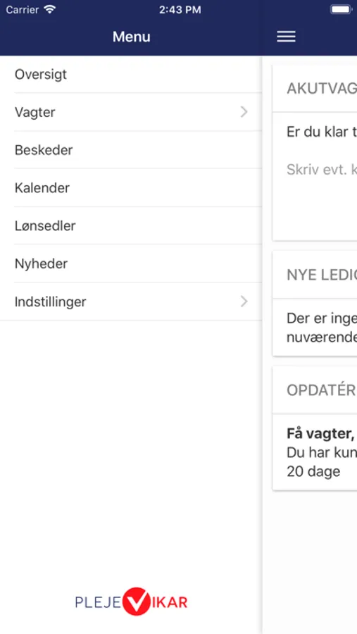 Som vikar hos Plejevikar får du med denne app direkte adgang til din kalender, vagtlister, lønsedler og alle de andre værktøjer, som giver dig det nødvendige overblik. Nu også når du er på farten.