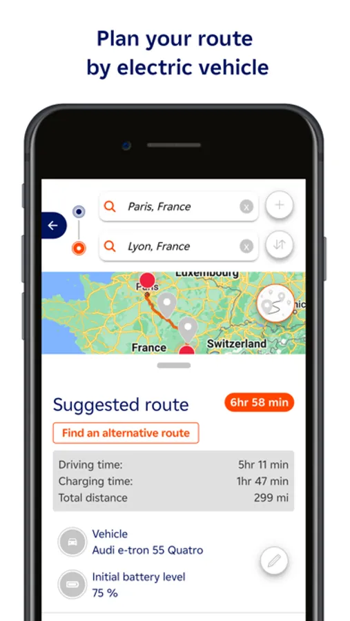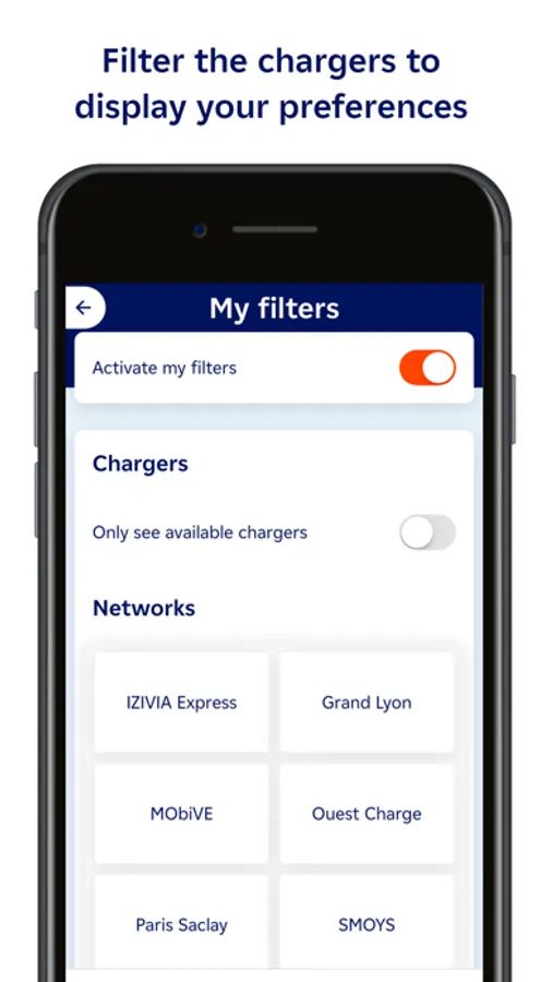 - Filter and save your charging preferences to display only those charging stations that are compatible with your electric car and the desired power;