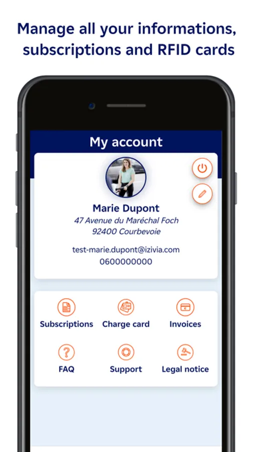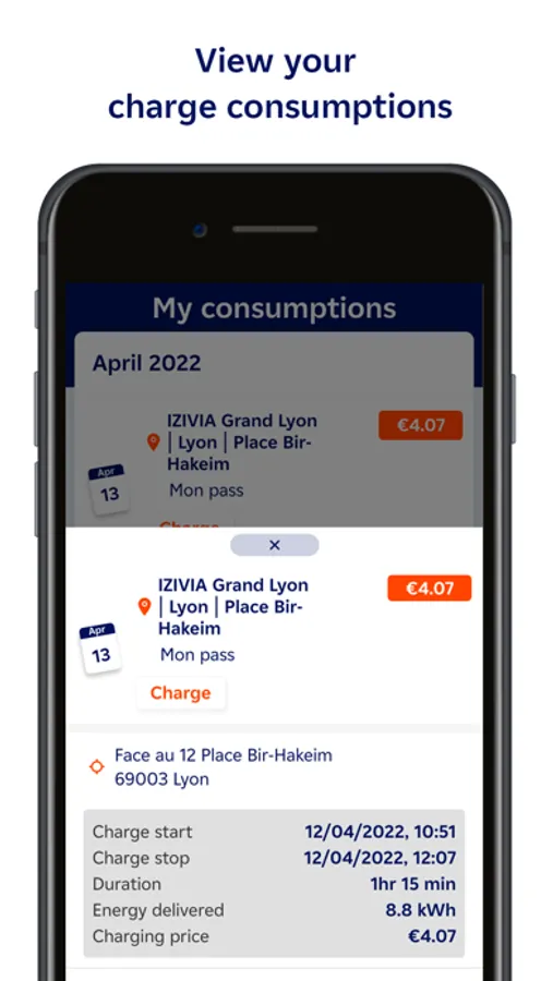 - Launch your charging session directly from the IZIVIA application, using your dematerialised IZIVIA Pass or your bank card;