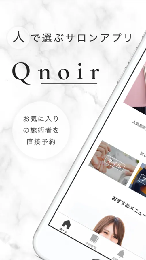美容師、アイリスト、ネイリスト、整体師、スタジオトレーナー、カウンセラーなど、多種多様なフリーランスのプロが集まる複合型シェアサロン「Qnoir(クノア)」。選ばれたプロだけが在籍する当サロンでは、専用のアプリ/webサービスで担当者(=プロ)を直接指名して予約でき、一人ひとりに向き合った丁寧なメニューをご提供しています。