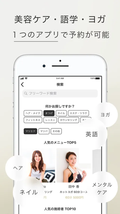 以下のようなカテゴリの施術をアプリ1つで全て予約できます: