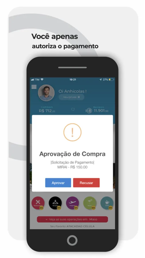 - E no estabelecimento credenciado, dê acesso ao atendente para fazer a leitura do seu QrCode dentro do App. Em seguida, você autoriza o pagamento ou não.