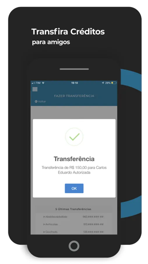 - Transfira saldo de cashback para outras pessoas.