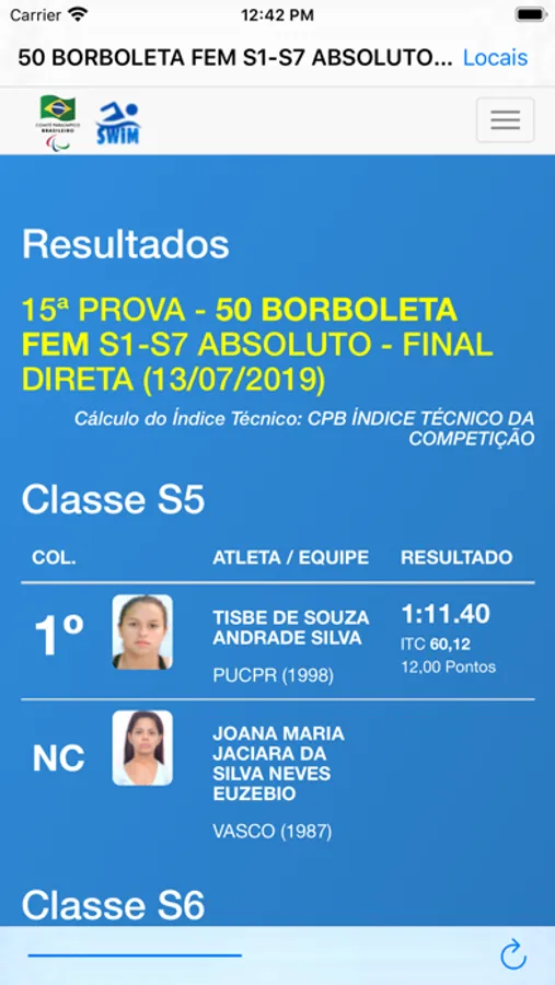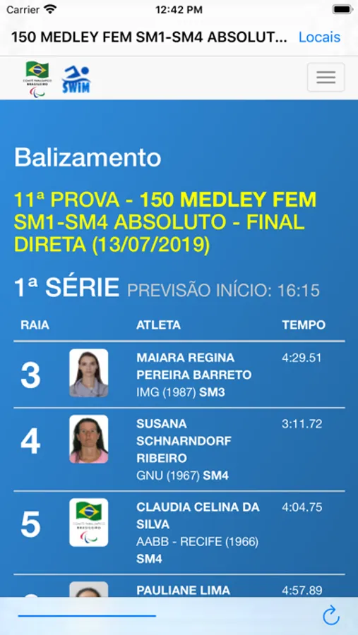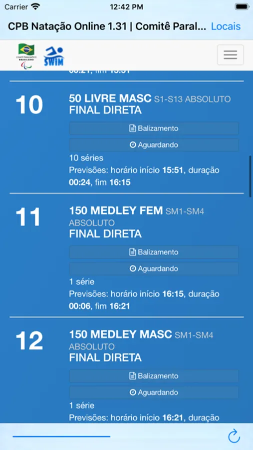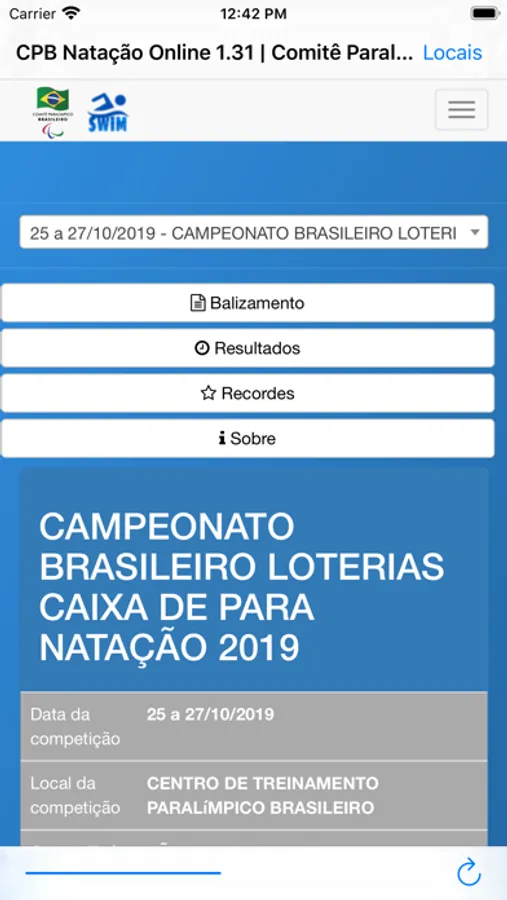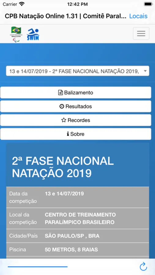 Confira todos os resultados e balizamentos das competições de natação promovidas pelo Comitê Paralímpico Brasileiro - CPB por todo o Brasil. O aplicativo fornece informações em tempo-real (quando anunciado) e permite checar informações de eventos passados.