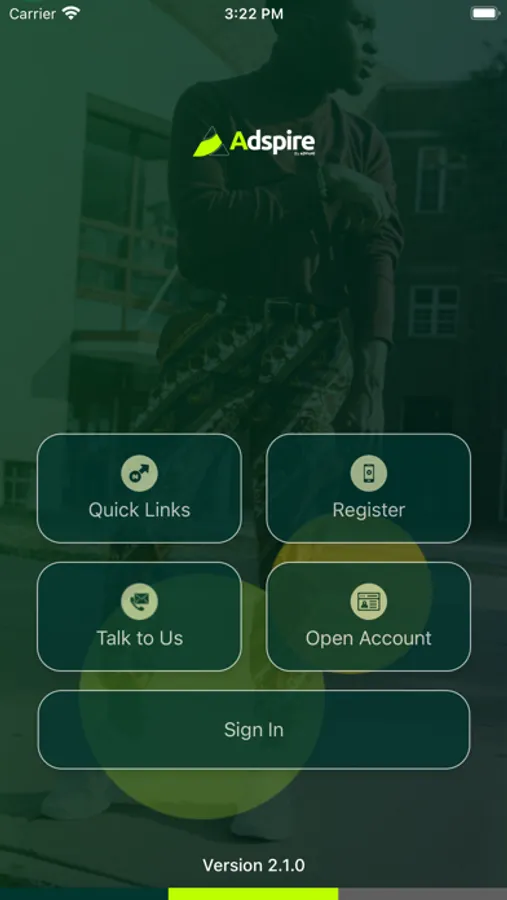 Launch Adspire by Advans and click on “Open Account” to create your account in minutes