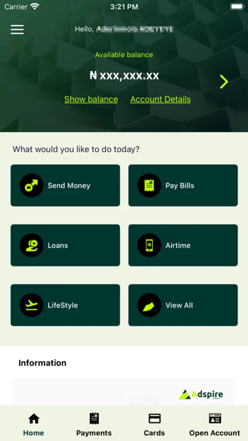 If you want to perform larger transactions or if you need support on Adspire by Advans Mobile, call Advans La Fayette Microfinance Bank customer service on 07000238267 or go to a branch.